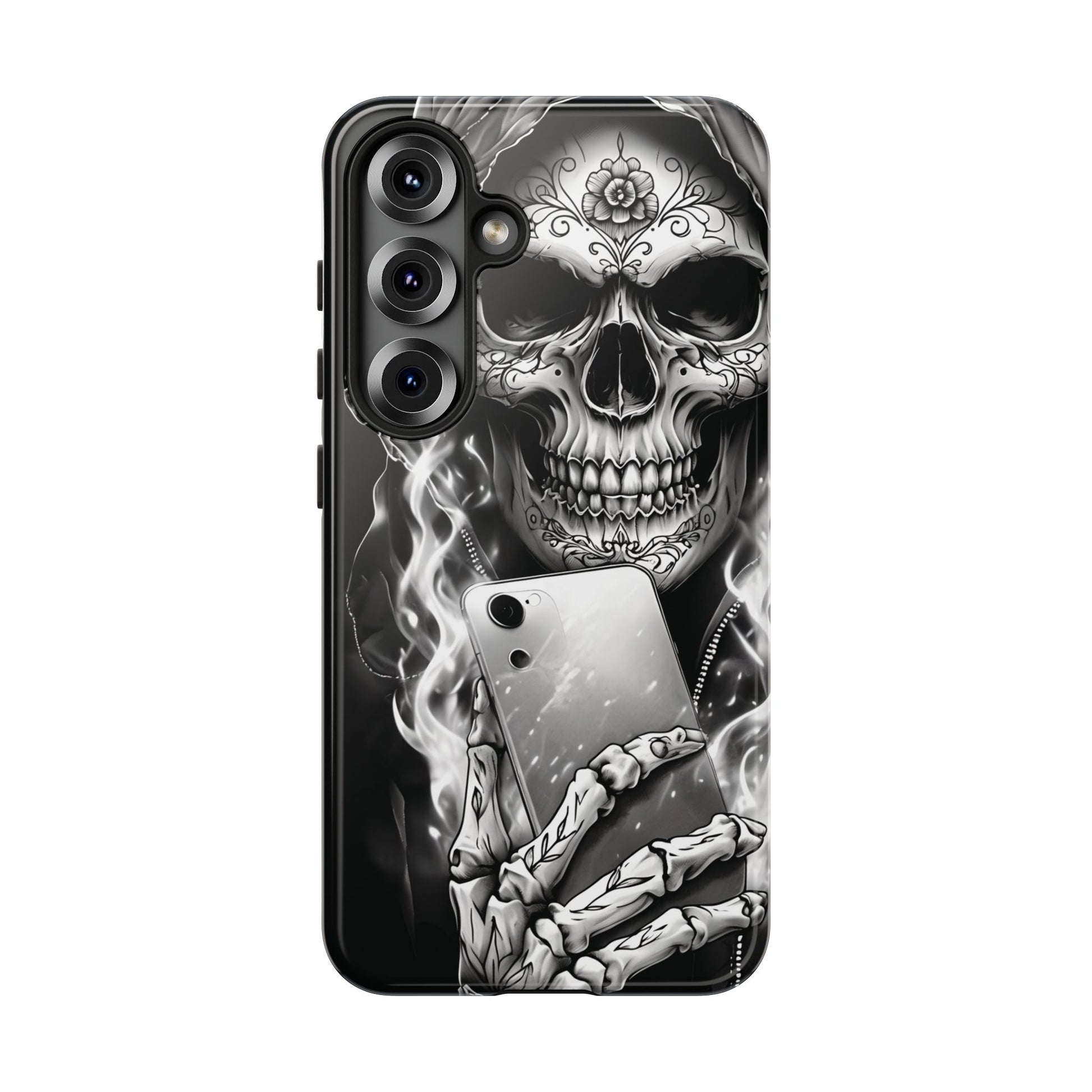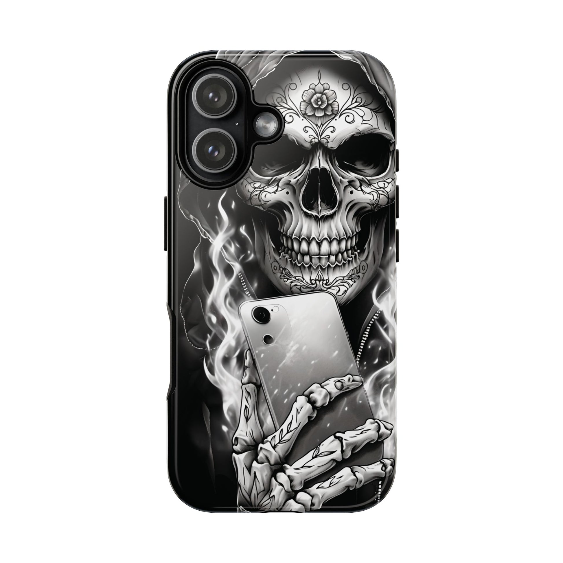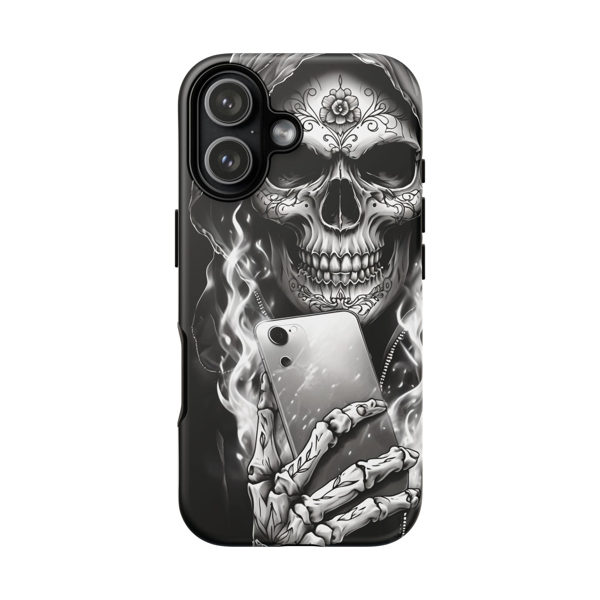 Built with a dual-layer polycarbonate shell, this case offers maximum impact resistance while staying slim enough to slide in your pocket—so the Grim Reaper Hooded Skeleton won’t weigh you down, even when life does.